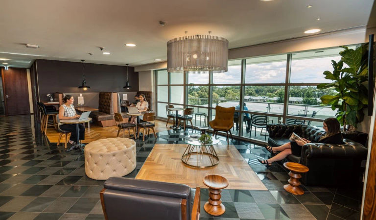 Nexus Norwest will appeal to those who want to be near to the CBD without having to pay city prices. Base yourself in the Baulkham Hills, a green suburban area north-west of Sydney. The private offices available for rent at this address are nothing short of pristine. The spaces are well-thought-out, immaculate, and boast an executive style office design. You can expect bright and spacious rooms that feature large windows, quality desks and chairs, several breakout points for quick catch-ups and meetings, and a fully fitted out meeting room that fit up to 16 people comfortably. Not only spacious, but they're also fully connected for presentations and the like. If you’re after your own space, complete with a separate hangout area, enquire about their select serviced offices that feature private balconies. That way, you can enjoy coffee breaks or unwind on Friday evenings with a cold one in hand, all the while admiring the unobstructed views. If you don’t need space provided for in private offices or aren’t in the office every day, there's a dedicated coworking space for consultants and independent contractors who're always on the move or those who need less room in a bustling work environment. By opting for this type of rental package, you have access to the office space when you need it.