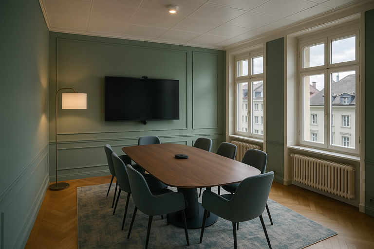 Offers more than just office space – it combines the charm of a historic building with all the conveniences of a modern workplace. Located in the former Lötschbergbahn headquarters, the space has been carefully renovated to preserve its character while providing state-of-the-art infrastructure. High ceilings, large windows, and generous layouts create a bright and inspiring environment for teams of all sizes.