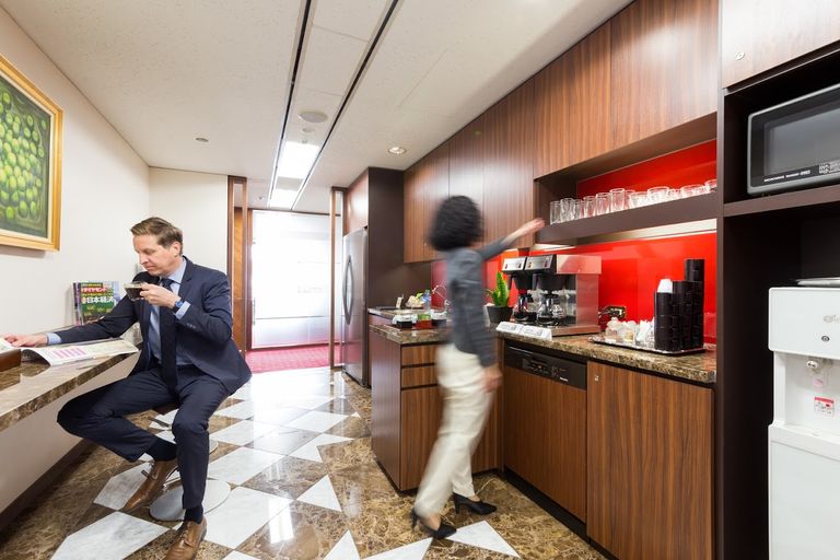 Hibiya Central Building stands tall in Hibiya's business district. Surrounded by major city banks, public institutions, and top-class hotels such as the Imperial Hotel and The Peninsula Tokyo, it is located in one of the most vibrant areas in Tokyo's business center. It is a base that can be chosen with peace of mind, not only for those starting a business, but also for those who are already running a business.There are many restaurants in the basement of the building and nearby, and just a 5-minute walk away is Hibiya Park, which once opened as Tokyo's first Western-style park and where you can play tennis while still being in the city, giving you a break from your busy business life. .The 14th floor of Servcorp has offices that meet a variety of needs, including a luxurious boardroom with an impressive granite table in the common area, an easy-to-use conference room, and a spacious coworking lounge. With a reception area and kitchen always stocked with fresh coffee, you'll have the perfect environment for your business.