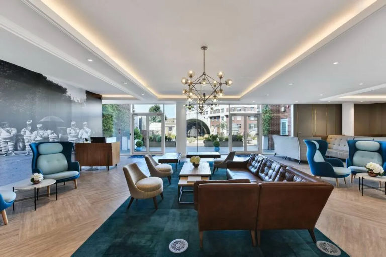 Michelin House is an iconic art-deco building in the heart of Chelsea, offering an office environment like no other. Originally home to the Michelin Tyre Company, its characterful and distinctive architecture is now a base for thriving businesses.The contemporary, spacious lounge area is flooded with light from the atrium, while stained glass windows provide colourful interest throughout. You can ride to work, with secure bike parking available within the building, and stylish shower rooms with complimentary soaps to freshen up.At the top of this architectural icon is a stunning roof terrace with laid back seating, soft furnishings and heaters. Breathtaking day and night, this distinctive alfresco setting gives you an exclusive place to relax, work or host guests.